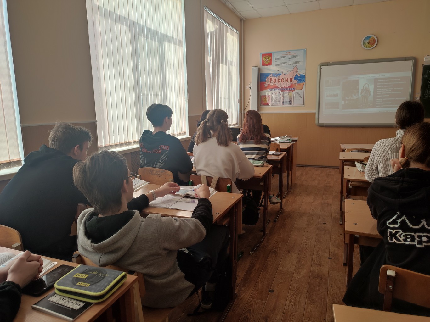 1 марта в 9 в и 10 а классах проведены беседы направленные на информирование о роли Президента Российской Федерации в обеспечении признания, соблюдения и защиты прав и свобод человека и гражданина. Обучающиеся активно участвовали в беседе, говорили об основных группах прав человека, о функциях Президента РФ.
