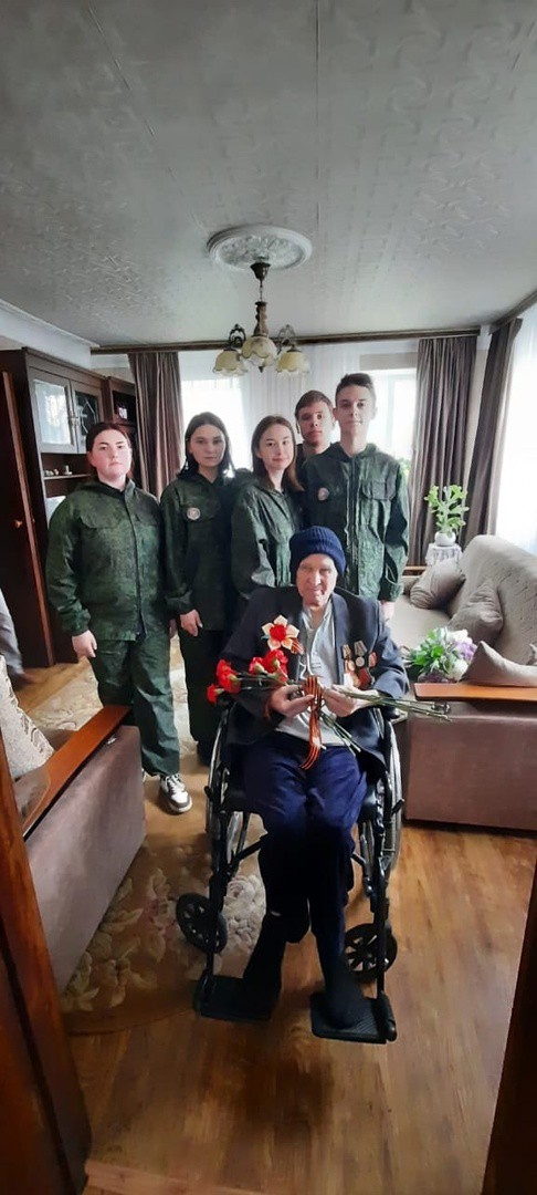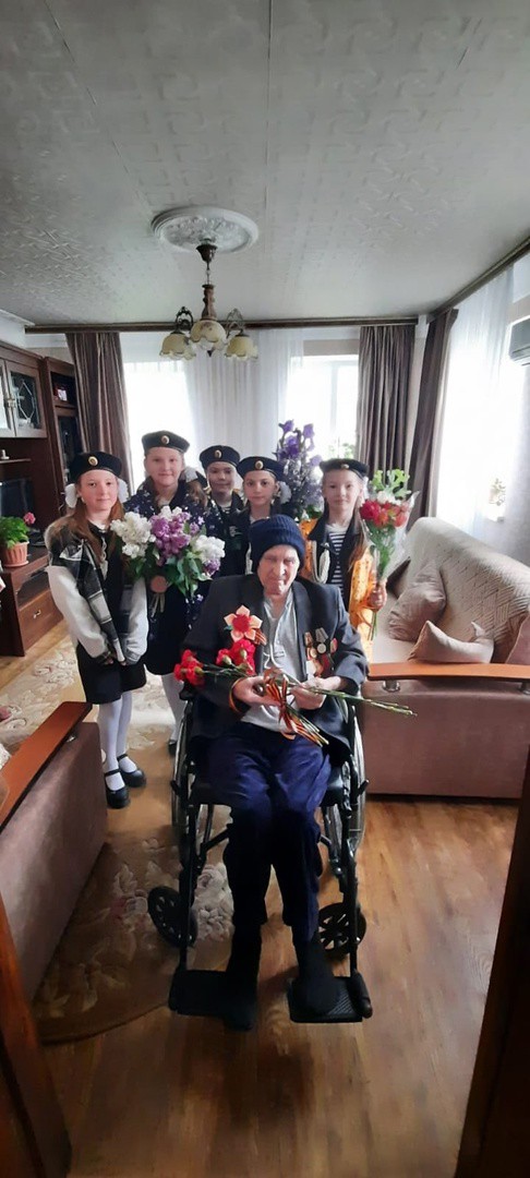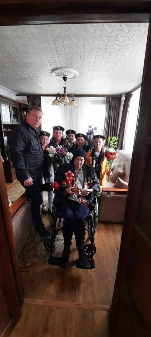 Юнармейцы 10 а класса и юные морские пехотинцы 4 б класса под руководством преподавателя-организатора ОБЖ Логинова С.А. и классного руководителя 4 б класса Никишиной Е.Н. поздравили с праздником Великой Победы Сапрыкина Бориса Петровича, ветерана Великой Отечественной войны, проживающего в микрорайоне гимназии.